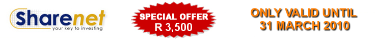 Dear Sharenet Subscribers A second positive year is on the cards – take advantage with Market Tracker The JSE All Share rose over 30% last year and all indicators point to another prosperous year in 2010. In the US for example, research indicates that in the second 12-months after a bear market decline and a positive year, only once in its history has the market not been positive for the second 12-month period. The South African economy has turned the corner and is expecting improving GDP growth over the course of 2010 and the extra buzz that the World Cup brings will create an exciting economic environment. Major profits still to be made in this bull market. The great news is that there are still so many undervalued shares to snap up! With Market Tracker, you can make confident and correct stock market decisions at the right time using the many indicators in the programme. Buying and selling with the help of technical analysis software makes investing so much easier. Market Tracker can help you Technical analysis software is a vital aspect of any technical analyst’s trading or investment strategy. Most investors look at both fundamental and technical data when executing buy and sell orders and structuring their portfolios. The software will automate charting, analysis and reporting to ensure that information flow is quick and timely. The predictions the software give based on historical data are of immense value. MarketTracker is guaranteed to make your life easier when it comes to tracking your investments and making critical decisions. With hundreds of new features and a 20-year database of prices included, MarketTracker has taken popular packages and improved on them drastically – giving you more value for money. Why choose Market Tracker MarketTracker is one of the best technical analysis software packages in the country and is used by many of the top financial institutions and thousands of private investors country-wide. If it works for them, it will definitely work for you! The software is easy to learn and use and it doesn’t matter if you have had prior experience with other technical analysis software or not. There is built-in help functionality in the program and our support staff is on hand to help you from 8:30am to 9pm every working day. Sharenet is the only company in South Africa licensed to retail Market Tracker to the public. In the fast-paced world of investing and trading you’ll come out on top with Market Tracker and gain that significant advantage over other investors. With improved portfolio reports and new indicators, MarketTracker has been designed to change the way you monitor your investments and make important decisions. Don’t lose hours trying to keep track of your shares when MarketTracker does it all for you at a click of a button, saving valuable time in between trades which at the end of the day means saving and making you money. When you need to make fast and accurate decisions, MarketTracker has all the tools (and more) to keep you in control of all your investments. While MarketTracker uses familiar features you’re used to getting with your existing technical analysis software, various value-added features have been included to help you monitor your portfolio and to handle live, streaming prices as they happen on the JSE. Scan thousands of shares in seconds, add a stop-loss management system and view and keep track of your individual portfolio plus much, much more! Market Tracker special For the month of March, each Market Tracker will sell for R3,500 and will include, at no additional cost, the highly praised Technical Analysis book, "From A-TO-Z" which is valued at over R250. It covers all aspects of technical analysis in one easy to read, highly digestible book. So, to recap, your Market Tracker package will include: