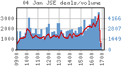 | 04/01/2011 | 200 | 143 | 67 | 410 | 152,934,849 | R7,361,068,917 | 72300 | 1983870 | | 03/01/2011 | 187 | 125 | 78 | 390 | 128,050,031 | R3,762,540,166 | 53672 | 872405 | | 31/12/2010 | 139 | 107 | 64 | 310 | 65,370,735 | R2,621,870,882 | 16021 | 480284 | | 30/12/2010 | 174 | 138 | 72 | 384 | 118,618,120 | R4,580,415,863 | 42201 | 1760119 | | 29/12/2010 | 178 | 112 | 71 | 361 | 81,411,080 | R3,882,523,703 | 39194 | 1575622 |