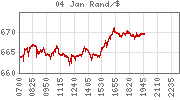| | | Name | Time | RP | Move | % Move | | Gold | 20:00 | 1376.25 | -38.07 | -2.69% | | Gold/Rand | 20:00 | 9210.83 | -146.75 | -1.57% | | Gold/R kg | 20:00 | 296128 | -3302 | -1.10% | | Silver | 20:00 | 29.4000 | -1.2700 | -4.14% | | Platinum | 19:59 | 1738.50 | -24.00 | -1.36% | | Palladium | 19:59 | 766.00 | -20.00 | -2.54% | | R157 | 17:06 | 7.22 | -.04 | -0.55% | | R204 | 17:06 | 7.92 | -.06 | -0.75% | | Brent Crude | 19:56 | 92.35 | -3.09 | -3.24% | | Rand / Dollar | 20:00 | 6.6927 | 0.0770 | 1.16% | | Rand / Pound | 19:55 | 10.4079 | 0.1954 | 1.91% | | Rand / Euro | 19:55 | 8.9146 | 0.0785 | 0.89% | | Rand / NZD | 19:58 | 5.1278 | 0.0081 | 0.16% | | Rand / AUD | 19:55 | 6.7230 | -0.0050 | -0.07% | | Yen / Dollar | 20:00 | 81.8000 | 0.0700 | 0.09% | | Euro / Dollar | 19:55 | 0.7514 | 0.0027 | 0.36% | | Dollar / Euro | 20:00 | 1.3311 | -0.0039 | -0.29% | | Pound / Dollar | 19:55 | 0.6413 | -0.0044 | -0.68% |