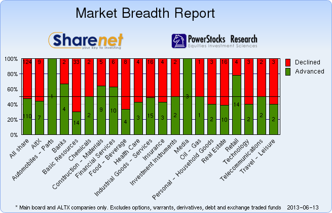 | 13/06/2013 | 149 | 194 | 73 | 416 | 315,567,454 | R18,053,078,140 | 224440 | 1958902 | | 12/06/2013 | 194 | 153 | 71 | 418 | 251,926,980 | R15,584,218,690 | 174975 | 2029814 | | 11/06/2013 | 81 | 312 | 52 | 445 | 354,044,580 | R18,720,460,496 | 231454 | 2444696 | | 10/06/2013 | 187 | 186 | 58 | 431 | 223,659,714 | R13,885,576,178 | 181163 | 696651 | | 07/06/2013 | 230 | 121 | 62 | 413 | 390,124,994 | R16,239,057,996 | 190412 | 2444967 |