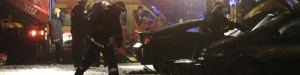 the ruins of a collapsed supermarket in the Latvian capital Riga