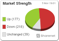 | | | Index Name | RP | Move | % Move | | FTSE/JSE Life Insurance | 34,693.02 | -64.88 | -0.19% | | FTSE/JSE Technology | 33,478.78 | -1119.50 | -3.24% | | SHARIAH TOP40 | 3,719.24 | -57 | -1.51% | | FTSE/JSE SHARIAH ALL | 4,324.66 | -57 | -1.31% | | FTSE JSE Fledgling | 8,353.45 | 29 | 0.35% | | LARGE CAP | 67,691.67 | -231 | -0.34% | | FTSE/JSE TOP 40 USD | 4,350.71 | 853 | 24.40% | | FTSE/JSE Alt X | 1,399.85 | -8 | -0.57% | | FTSE/JSE AFRICA ALTX 15 | 915.50 | -19 | -2.06% | | SA LISTED PROPERTY | 324.19 | -3.08 | -0.94% | | CAPPED PROPERTY | 241.50 | | -1.01% | | RESOURCE | 35,325.84 | -598 | -1.66% | | DIVIDEND PLUS | 285.74 | -3 | -1.21% | | FTSE/JSE RAFI 40 | 12,748.01 | 6 | 0.05% | | FTSE/JSE RAFI ALLSHARE | 11,882.98 | -11 | -0.09% | | Capped Top 40 | 31,543.47 | -184 | -0.58% | | Capped All Share | 34,061.31 | -183 | -0.53% | | CAPPED INDUSTRIAL 25 | 86,702.95 | | 15.84% | | All Share Style Value | 396.65 | 0 | 0.00% | | All Share Style Growth | 868.14 | 0 | 0.00% | | JSE ALL PROPERTY | 8,287.98 | -76.27 | -0.91% | | ALL SHARE NET TRI | 67,825.34 | -331 | -0.49% | | JSE SWIX ALSI NET TRI | 13,511.36 | -103 | -0.76% | | FTSE/JSE Leisure Goods | 1,186.96 | -63 | -5.04% | | FTSE/JSE Retailers | 6,579.25 | -105 | -1.58% | | FTSE/JSE Tobacco | 6,650.05 | 39 | 0.58% |