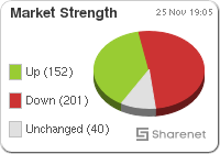| | | Index Name | RP | Move | % Move | | FTSE/JSE Technology | 49,501.03 | 331.17 | 0.67% | | SHARIAH TOP40 | 3,544.88 | -63 | -1.75% | | FTSE/JSE SHARIAH ALL | 4,369.48 | -73 | -1.64% | | FTSE JSE Fledgling | 10,465.77 | -29 | -0.27% | | LARGE CAP | 84,240.55 | -415 | -0.49% | | FTSE/JSE TOP 40 USD | 4,546.31 | 1049 | 30.00% | | FTSE/JSE Alt X | 593.59 | -3 | -0.42% | | FTSE/JSE AFRICA ALTX 15 | 319.45 | -4 | -1.27% | | SA LISTED PROPERTY | 393.98 | -1.56 | -0.39% | | CAPPED PROPERTY | 284.20 | | -0.38% | | RESOURCE | 32,834.00 | -859 | -2.55% | | DIVIDEND PLUS | 267.72 | -4 | -1.31% | | FTSE/JSE RAFI 40 | 15,512.17 | -142 | -0.91% | | FTSE/JSE RAFI ALLSHARE | 14,494.65 | -112 | -0.77% | | Capped Top 40 | 38,635.22 | -339 | -0.87% | | Capped All Share | 42,419.37 | -373 | -0.87% | | CAPPED INDUSTRIAL 25 | 111,644.86 | | 49.16% | | All Share Style Value | 456.20 | 0 | 0.00% | | All Share Style Growth | 1,210.48 | 0 | 0.00% | | JSE ALL PROPERTY | 9,785.34 | -36.99 | -0.38% | | ALL SHARE NET TRI | 84,875.24 | -733 | -0.86% | | JSE SWIX ALSI NET TRI | 16,024.06 | -138 | -0.86% | | FTSE/JSE Leisure Goods | 1,350.00 | 0 | 0.00% | | FTSE/JSE Retailers | 8,222.67 | -122 | -1.46% | | FTSE/JSE Tobacco | 8,643.59 | 72 | 0.84% |