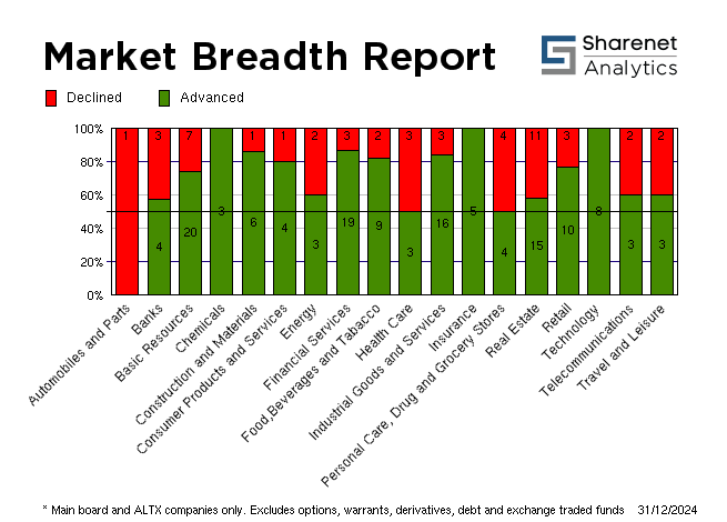 | 31/12/2024 | 208 | 88 | 31 | 327 | 110,014,614 | R6,548,377,767 | 95979 | 905142 | | 30/12/2024 | 104 | 284 | 51 | 439 | 130,217,092 | R10,007,428,789 | 226328 | 3874507 | | 27/12/2024 | 193 | 155 | 30 | 378 | 127,885,640 | R9,881,846,091 | 224295 | 3920615 | | 24/12/2024 | 202 | 103 | 28 | 333 | 42,015,801 | R3,020,341,281 | 48937 | 604815 | | 23/12/2024 | 226 | 120 | 25 | 371 | 117,875,211 | R11,367,160,690 | 224611 | 3451453 | * Includes all listed instruments on the JSE