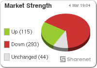 | | | Index Name | RP | Move | % Move | | FTSE/JSE Technology | 55,559.62 | 403.03 | 0.73% | | SHARIAH TOP40 | 3,783.62 | -76 | -1.97% | | FTSE/JSE SHARIAH ALL | 4,517.88 | -77 | -1.67% | | FTSE JSE Fledgling | 9,798.58 | 7 | 0.08% | | LARGE CAP | 89,511.33 | -674 | -0.75% | | FTSE/JSE TOP 40 USD | 4,595.82 | 1099 | 31.41% | | FTSE/JSE Alt X | 521.95 | -5 | -0.92% | | FTSE/JSE AFRICA ALTX 15 | 188.27 | -6 | -2.87% | | SA LISTED PROPERTY | 376.03 | -6.97 | -1.82% | | CAPPED PROPERTY | 271.83 | | -1.78% | | RESOURCE | 34,347.00 | -591 | -1.69% | | DIVIDEND PLUS | 248.61 | -4 | -1.44% | | FTSE/JSE RAFI 40 | 15,654.69 | -205 | -1.30% | | FTSE/JSE RAFI ALLSHARE | 14,470.31 | -221 | -1.50% | | Capped Top 40 | 39,930.60 | -424 | -1.05% | | Capped All Share | 43,248.03 | -442 | -1.01% | | CAPPED INDUSTRIAL 25 | 119,500.20 | | 59.66% | | All Share Style Value | 463.51 | 0 | 0.00% | | All Share Style Growth | 1,245.09 | 0 | 0.00% | | JSE ALL PROPERTY | 9,359.44 | -170.12 | -1.79% | | ALL SHARE NET TRI | 86,730.82 | -834 | -0.95% | | JSE SWIX ALSI NET TRI | 16,374.39 | -157 | -0.95% | | FTSE/JSE Leisure Goods | 1,350.00 | 0 | 0.00% | | FTSE/JSE Retailers | 7,080.20 | -136 | -1.89% | | FTSE/JSE Tobacco | 9,471.87 | 128 | 1.37% |