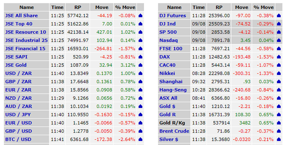 | Trading Stats Total volume, value and ups/downs on the JSE View Screenshots |